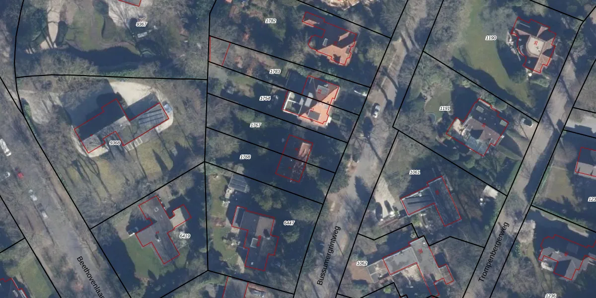 Bussumergrintweg 9 is gelegen op kadastraal perceel HVS00C1767. Deze kadastrale aanduiding is uniek en wordt gebruikt door het Kadaster om eigendomsrechten en andere zakelijke rechten vast te leggen. Het perceel maakt onderdeel uit van de kadastrale gemeente Hilversum.