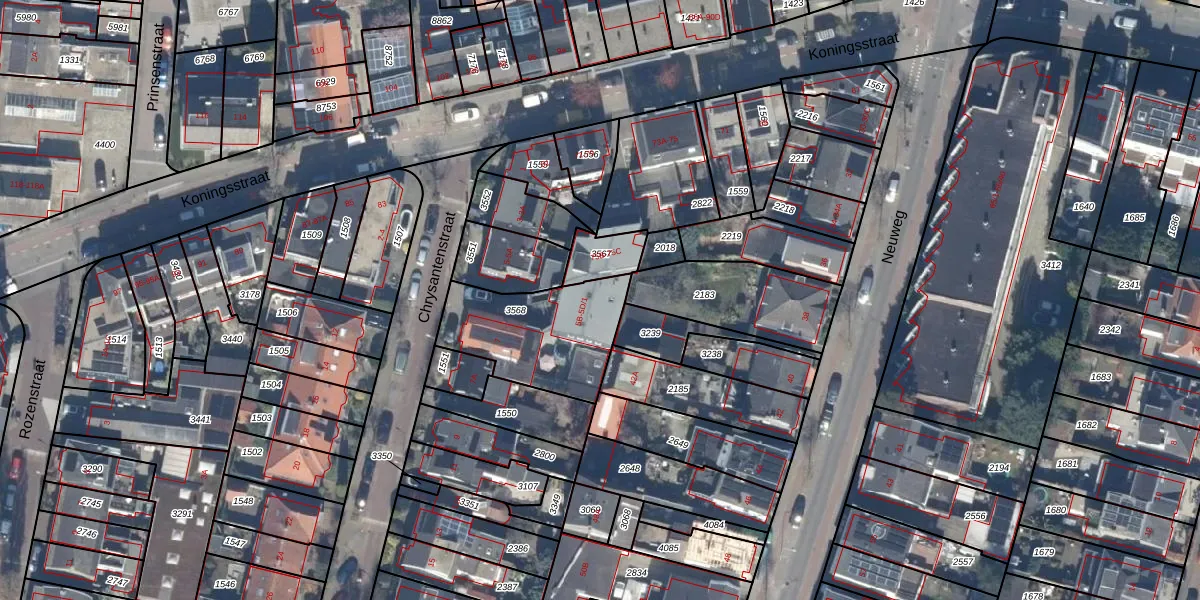 Het perceel waarop Chrysantenstraat 5-C-1 staat heeft een oppervlakte van 450 m². Dit is een groot perceel. De perceeloppervlakte wordt geregistreerd door het Kadaster. Gedetailleerde informatie over de maten van dit perceel kunt u vinden in het rapport Kadastrale kaart met maatvoering van Chrysantenstraat 5-C-1.