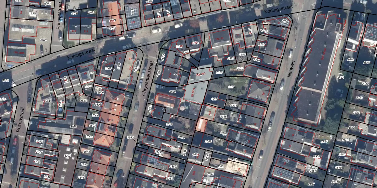 Het perceel waarop Chrysantenstraat 5-D staat heeft een oppervlakte van 450 m². Dit is een groot perceel. De perceeloppervlakte wordt geregistreerd door het Kadaster. Gedetailleerde informatie over de maten van dit perceel kunt u vinden in het rapport Kadastrale kaart met maatvoering van Chrysantenstraat 5-D.