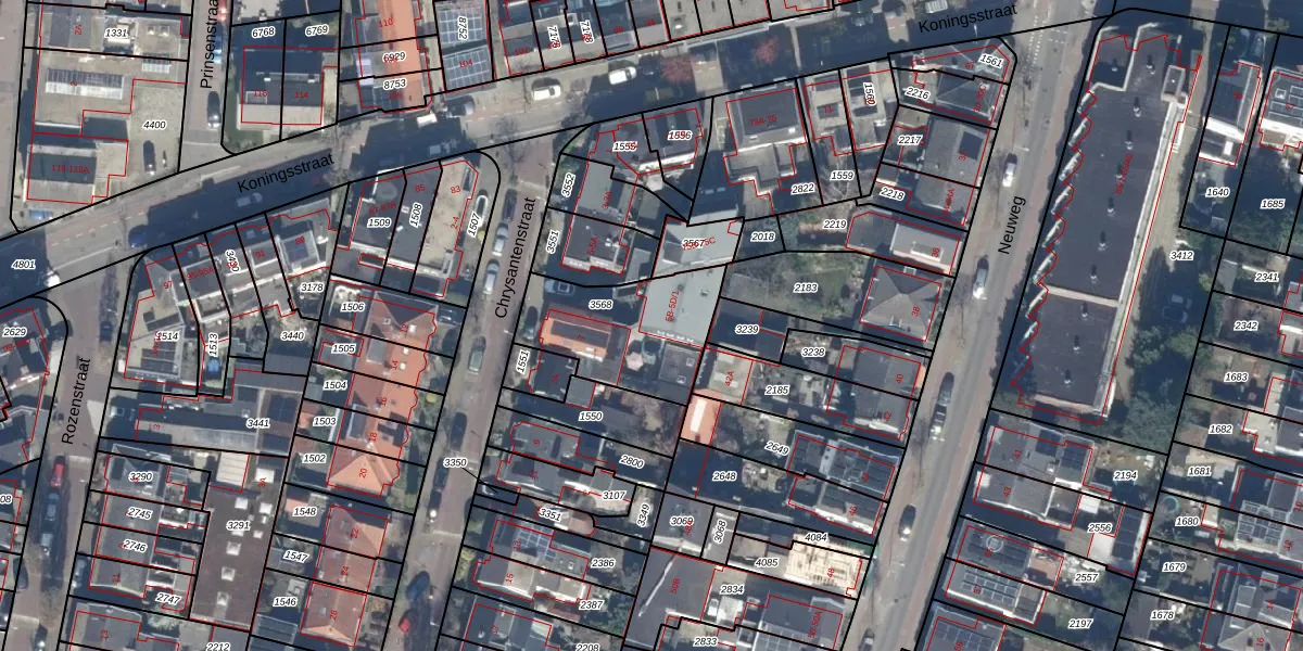Het perceel waarop Chrysantenstraat 5-D-1 staat heeft een oppervlakte van 450 m². Dit is een groot perceel. De perceeloppervlakte wordt geregistreerd door het Kadaster. Gedetailleerde informatie over de maten van dit perceel kunt u vinden in het rapport Kadastrale kaart met maatvoering van Chrysantenstraat 5-D-1.