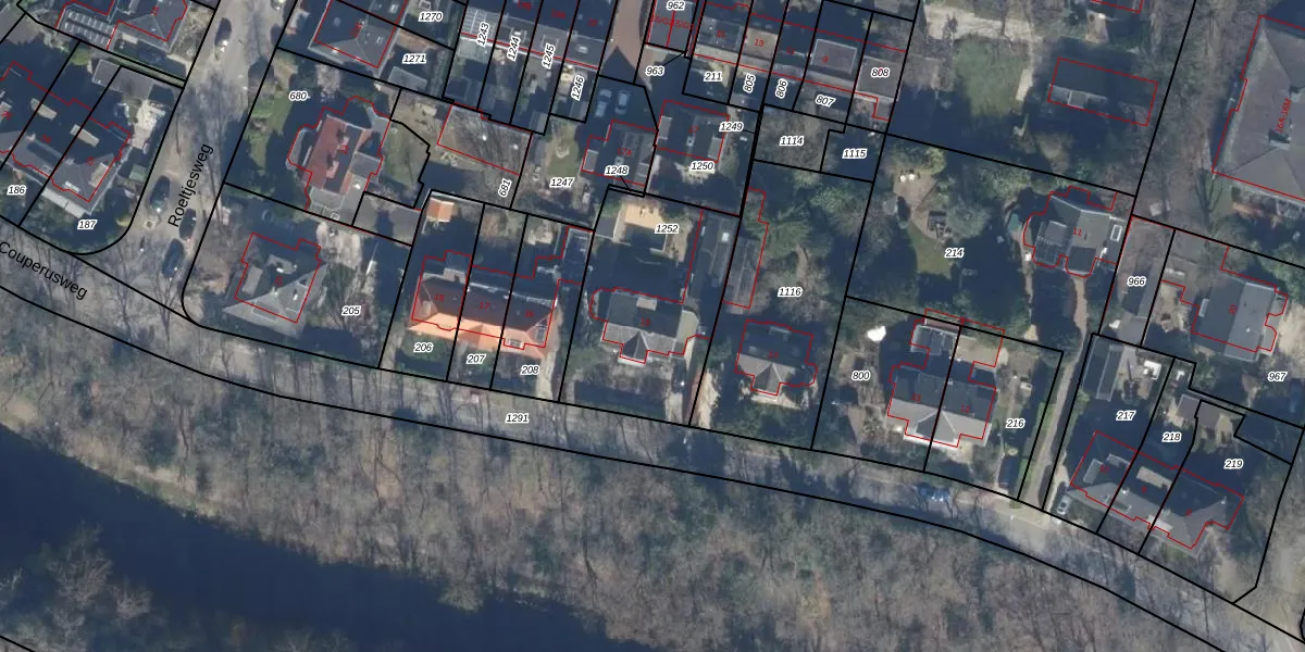 Gebruik de zoekbalk of klik op een perceel voor informatie over de adressen binnen dit perceel.