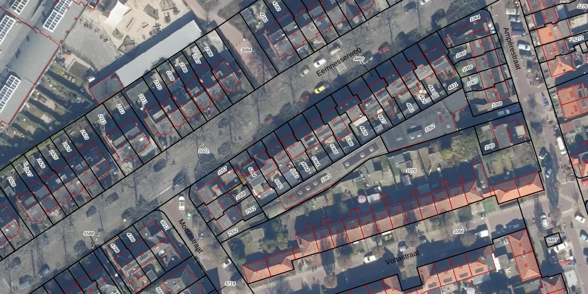Het perceel waarop Eemnesserweg 106 staat heeft een oppervlakte van 112 m². Dit is een middelgroot perceel. De perceeloppervlakte wordt geregistreerd door het Kadaster. Gedetailleerde informatie over de maten van dit perceel kunt u vinden in het rapport Kadastrale kaart met maatvoering van Eemnesserweg 106.
