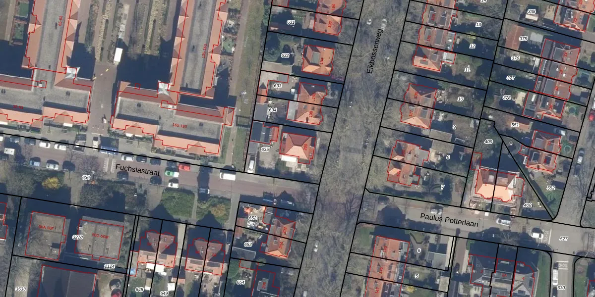 Gebruik de zoekbalk of klik op een perceel voor informatie over de adressen binnen dit perceel.