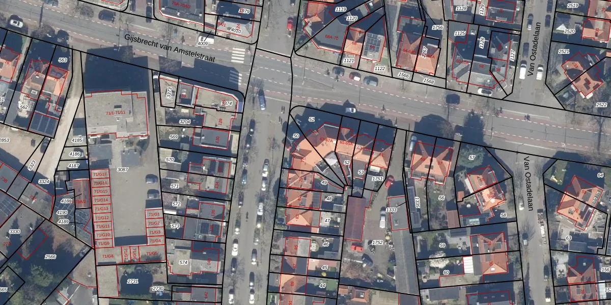 Gebruik de zoekbalk of klik op een perceel voor informatie over de adressen binnen dit perceel.