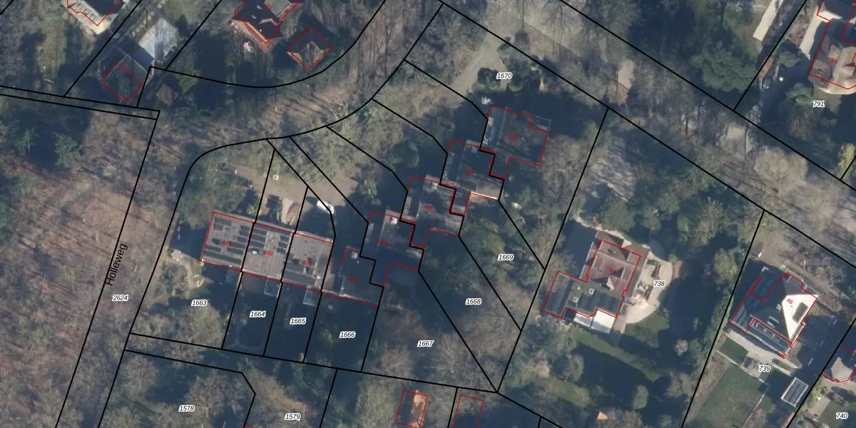 Gebruik de zoekbalk of klik op een perceel voor informatie over de adressen binnen dit perceel.