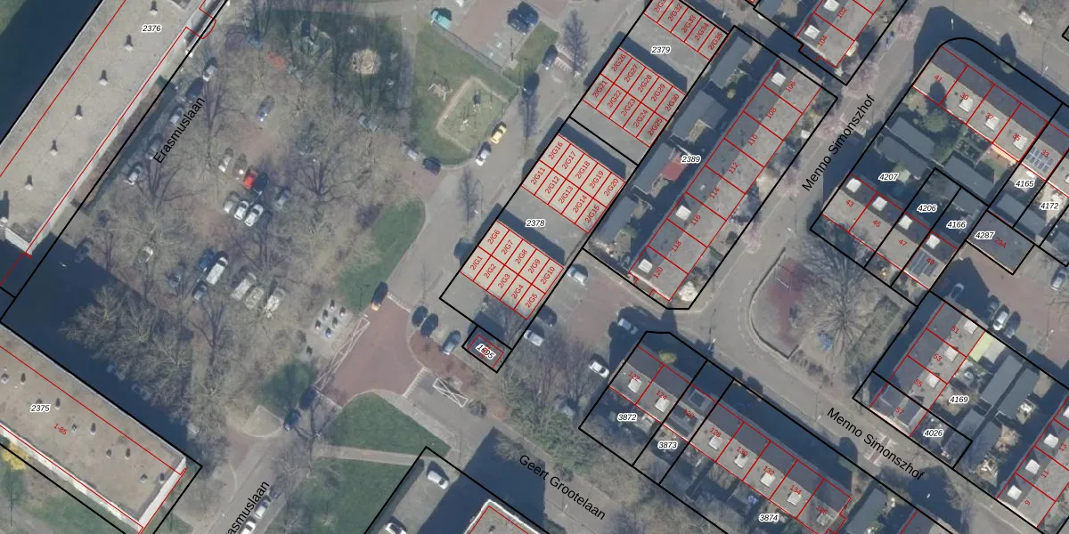 Het perceel waarop Erasmuslaan 2-G9 staat heeft een oppervlakte van 686 m². Dit is een groot perceel. De perceeloppervlakte wordt geregistreerd door het Kadaster. Gedetailleerde informatie over de maten van dit perceel kunt u vinden in het rapport Kadastrale kaart met maatvoering van Erasmuslaan 2-G9.