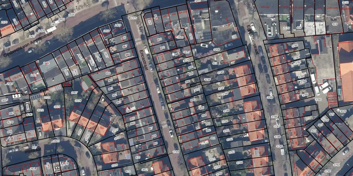 Gebruik de zoekbalk of klik op een perceel voor informatie over de adressen binnen dit perceel.