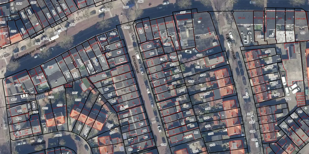 Ericastraat 9 is gelegen op kadastraal perceel HVS00L900. Deze kadastrale aanduiding is uniek en wordt gebruikt door het Kadaster om eigendomsrechten en andere zakelijke rechten vast te leggen. Het perceel maakt onderdeel uit van de kadastrale gemeente Hilversum.