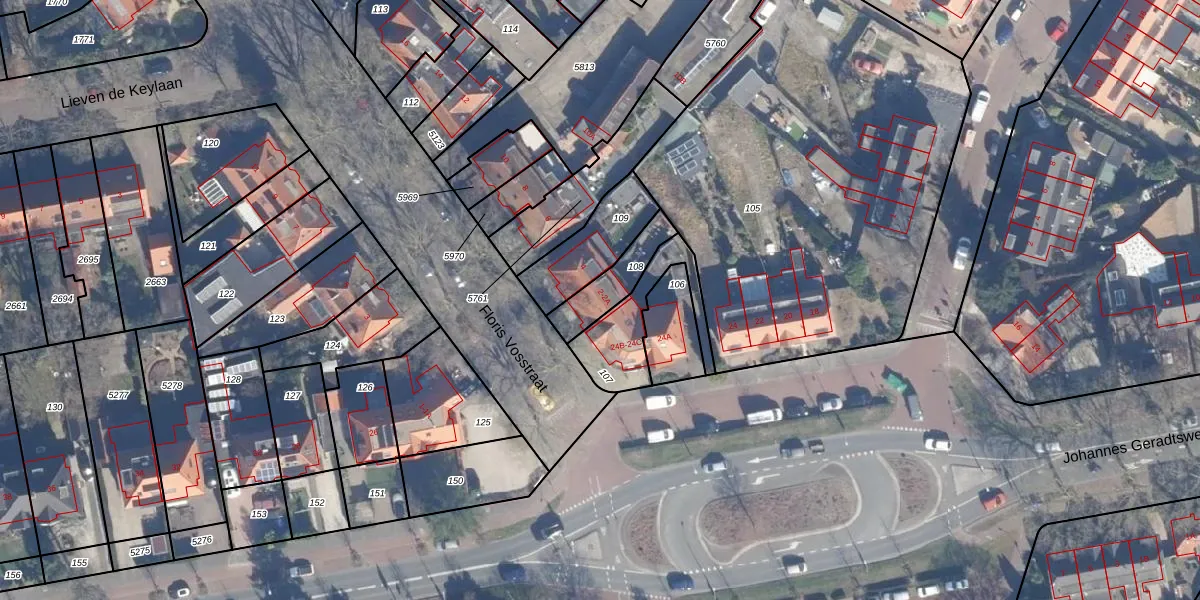 Het perceel waarop Floris Vosstraat 2 staat heeft een oppervlakte van 142 m². Dit is een middelgroot perceel. De perceeloppervlakte wordt geregistreerd door het Kadaster. Gedetailleerde informatie over de maten van dit perceel kunt u vinden in het rapport Kadastrale kaart met maatvoering van Floris Vosstraat 2.
