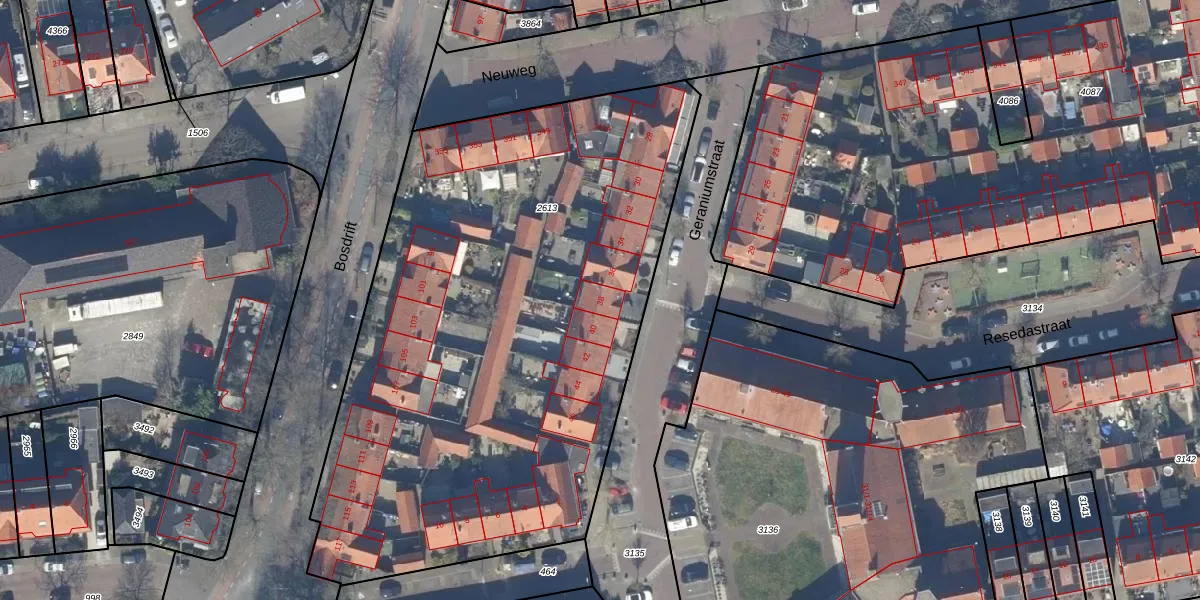 Het perceel waarop Geraniumstraat 38 staat heeft een oppervlakte van 3548 m². Dit is een zeer groot perceel. De perceeloppervlakte wordt geregistreerd door het Kadaster. Gedetailleerde informatie over de maten van dit perceel kunt u vinden in het rapport Kadastrale kaart met maatvoering van Geraniumstraat 38.