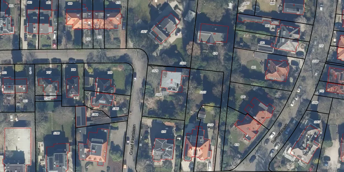 Het perceel waarop Graaf Florislaan 2 staat heeft een oppervlakte van 758 m². Dit is een groot perceel. De perceeloppervlakte wordt geregistreerd door het Kadaster. Gedetailleerde informatie over de maten van dit perceel kunt u vinden in het rapport Kadastrale kaart met maatvoering van Graaf Florislaan 2.