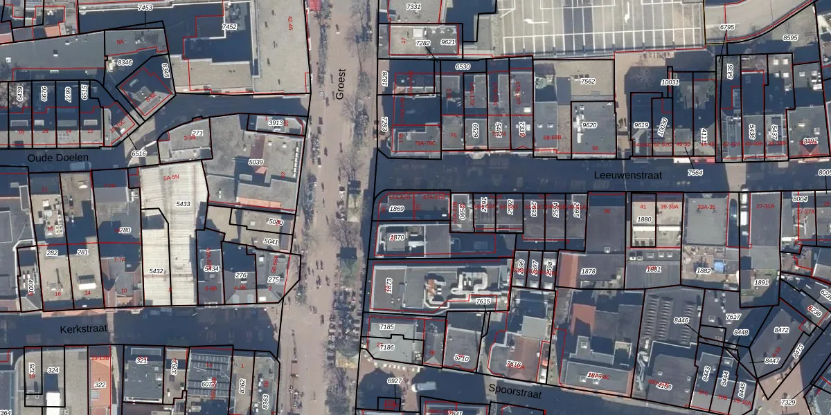 Het perceel waarop Groest 19 staat heeft een oppervlakte van 135 m². Dit is een middelgroot perceel. De perceeloppervlakte wordt geregistreerd door het Kadaster. Gedetailleerde informatie over de maten van dit perceel kunt u vinden in het rapport Kadastrale kaart met maatvoering van Groest 19.