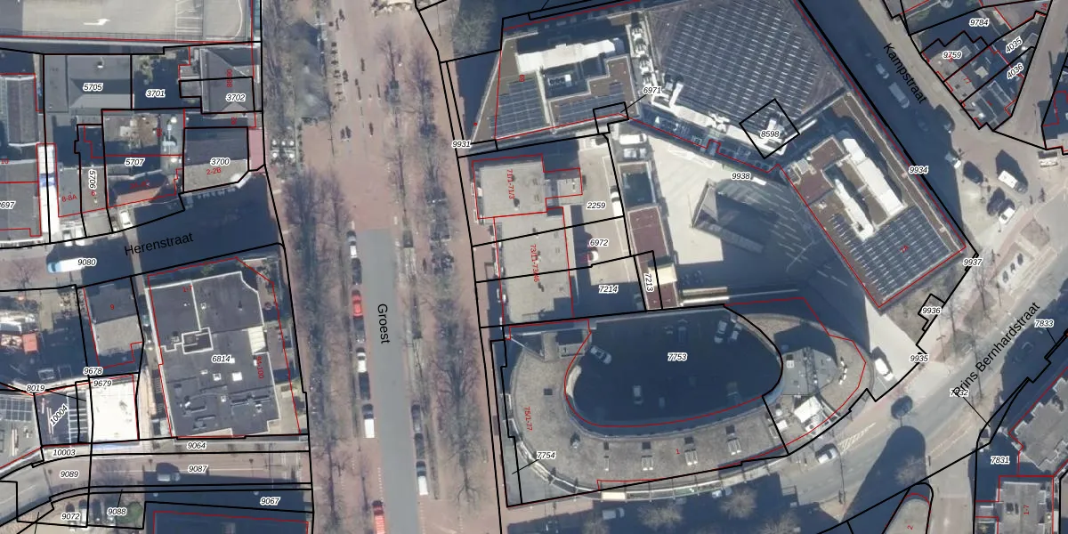 Groest 73-45 is gelegen op kadastraal perceel HVS00N6972. Deze kadastrale aanduiding is uniek en wordt gebruikt door het Kadaster om eigendomsrechten en andere zakelijke rechten vast te leggen. Het perceel maakt onderdeel uit van de kadastrale gemeente Hilversum.