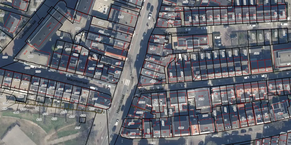 Het perceel waarop Havenstraat 111 staat heeft een oppervlakte van 83 m². Dit is een klein perceel. De perceeloppervlakte wordt geregistreerd door het Kadaster. Gedetailleerde informatie over de maten van dit perceel kunt u vinden in het rapport Kadastrale kaart met maatvoering van Havenstraat 111.