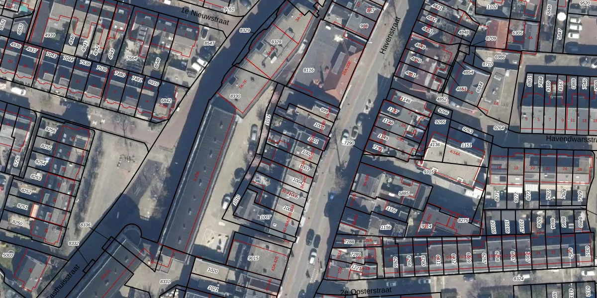 Het perceel waarop Havenstraat 30 staat heeft een oppervlakte van 94 m². Dit is een klein perceel. De perceeloppervlakte wordt geregistreerd door het Kadaster. Gedetailleerde informatie over de maten van dit perceel kunt u vinden in het rapport Kadastrale kaart met maatvoering van Havenstraat 30.