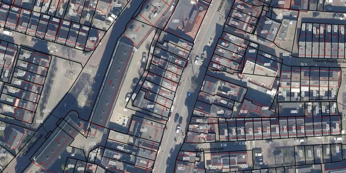 Het perceel waarop Havenstraat 34 staat heeft een oppervlakte van 94 m². Dit is een klein perceel. De perceeloppervlakte wordt geregistreerd door het Kadaster. Gedetailleerde informatie over de maten van dit perceel kunt u vinden in het rapport Kadastrale kaart met maatvoering van Havenstraat 34.