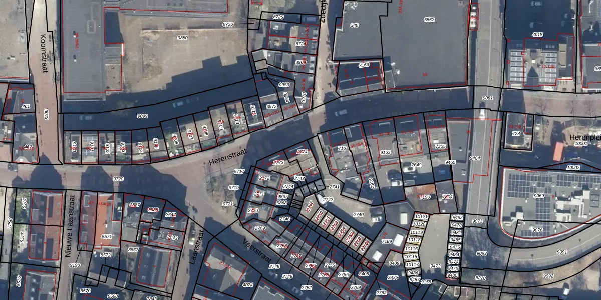 Het perceel waarop Herenstraat 39 staat heeft een oppervlakte van 90 m². Dit is een klein perceel. De perceeloppervlakte wordt geregistreerd door het Kadaster. Gedetailleerde informatie over de maten van dit perceel kunt u vinden in het rapport Kadastrale kaart met maatvoering van Herenstraat 39.