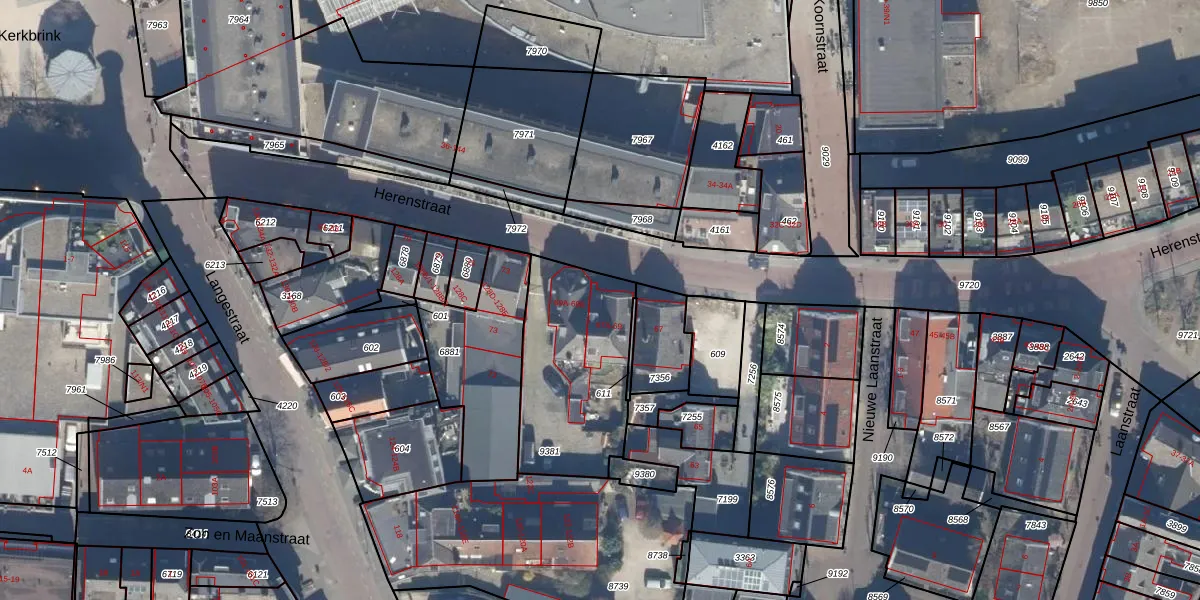 Het perceel waarop Herenstraat 67-B staat heeft een oppervlakte van 605 m². Dit is een groot perceel. De perceeloppervlakte wordt geregistreerd door het Kadaster. Gedetailleerde informatie over de maten van dit perceel kunt u vinden in het rapport Kadastrale kaart met maatvoering van Herenstraat 67-B.