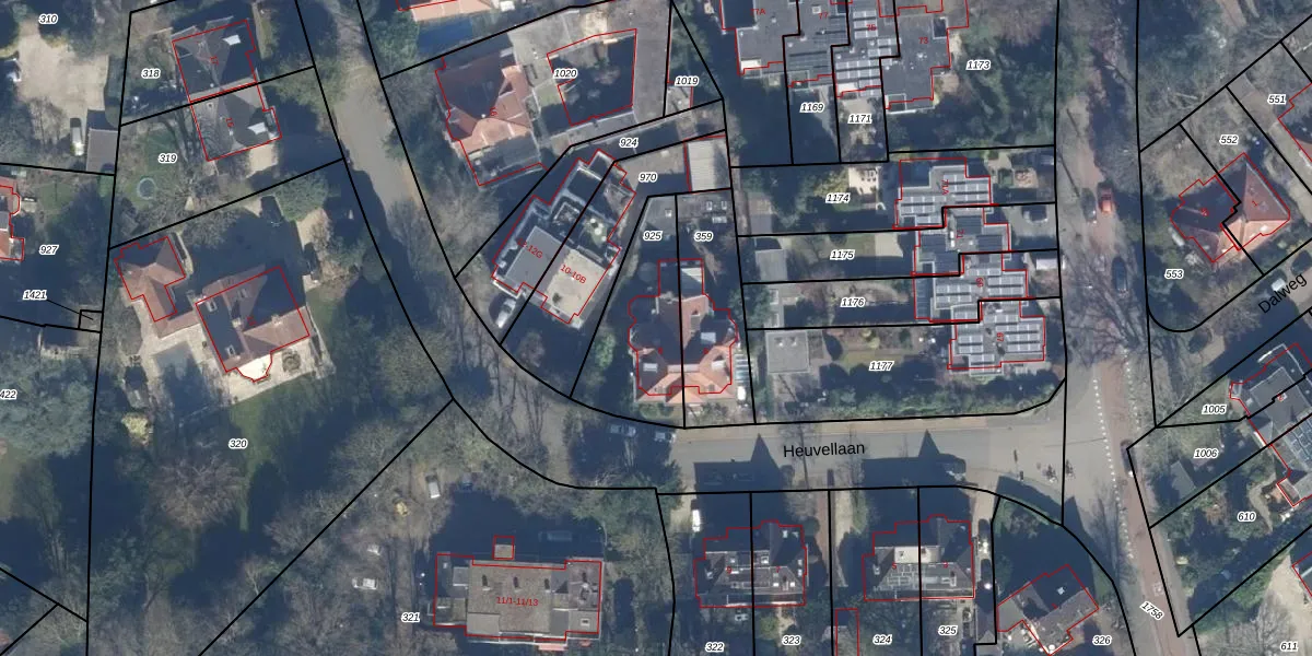 Het perceel waarop Heuvellaan 8 staat heeft een oppervlakte van 384 m². Dit is een groot perceel. De perceeloppervlakte wordt geregistreerd door het Kadaster. Gedetailleerde informatie over de maten van dit perceel kunt u vinden in het rapport Kadastrale kaart met maatvoering van Heuvellaan 8.