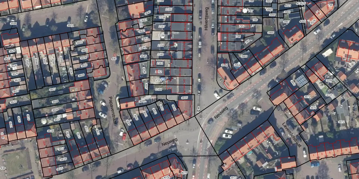 Het adres is gelegen op perceel 2164 in de sectie L en de kadastrale gemeente Hilversum. De kadastrale aanduiding is aldus HVS00-L-2164. Het perceel is 143 m² groot. Dat is kleiner dan de gemiddelde perceeloppervlakte in Hilversum, dat op 1394,51 m² ligt. Het kleinste perceel in de kadastrale gemeente is 0 m² groot. De grootste perceeloppervlakte is 91,7 ha. Op het perceel liggen in totaal 2 adressen. De huidige grenzen van het perceel zijn digitaal in de Basisregistratie Kadaster (BRK) geregistreerd op 03-09-2010.