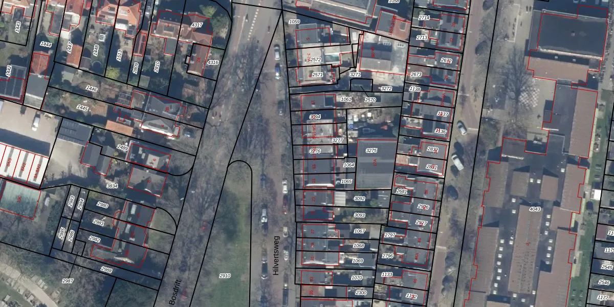 Het perceel waarop het adres ligt is HVS00-L-3276. De afkorting 'HVS00' staat voor kadastrale gemeente Hilversum. Het perceel is kleiner dan gemiddeld in Hilversum. Het perceel is 85 m² groot, terwijl het gemiddelde ligt op 1394,51 m². Het kleinste perceel in de kadastrale gemeente is 0 m² groot. De grootste perceeloppervlakte is 91,7 ha. Er zijn 3 adressen aanwezig op het perceel. De huidige grenzen van het perceel zijn digitaal in de Basisregistratie Kadaster (BRK) geregistreerd op 28-11-1997.