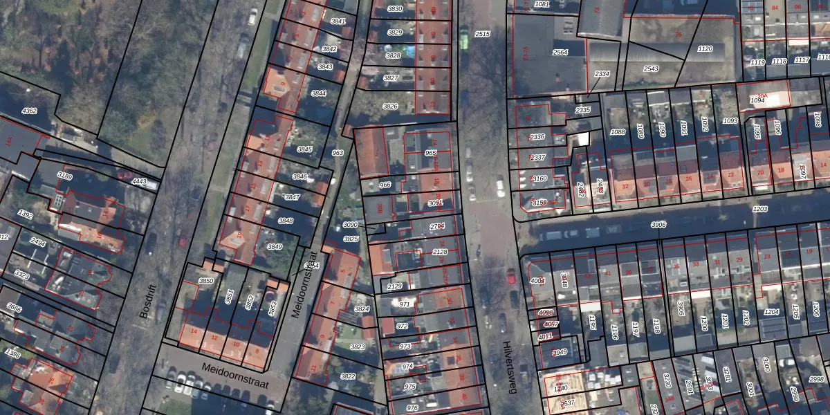 Het adres is gelegen op perceel 3091 in de sectie L en de kadastrale gemeente Hilversum. De kadastrale aanduiding is aldus HVS00-L-3091. De gemiddelde perceelgrootte in Hilversum is 1394,51 m². Dit perceel is kleiner: de perceeloppervlakte bedraagt 150 m². Het kleinste perceel in de kadastrale gemeente is 0 m² groot. De grootste perceeloppervlakte is 91,7 ha. Er zijn 3 adressen aanwezig op het perceel. De huidige grenzen van het perceel zijn digitaal in de Basisregistratie Kadaster (BRK) geregistreerd op 14-06-1999.