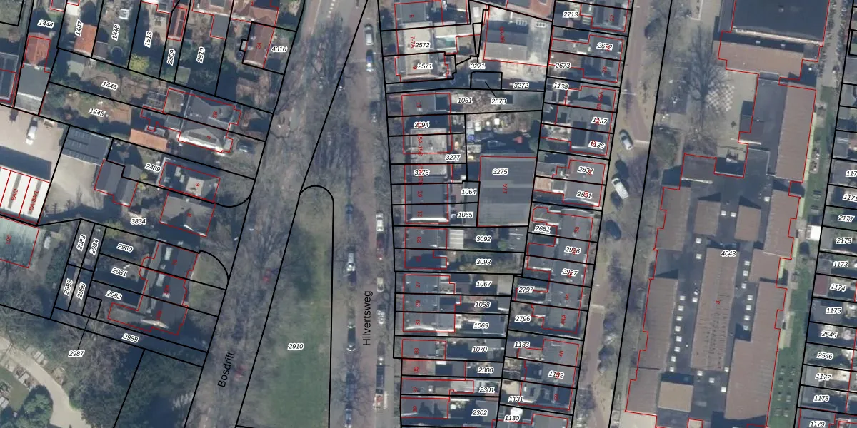 Hilvertsweg 21 is gelegen op kadastraal perceel HVS00L1065. Deze kadastrale aanduiding is uniek en wordt gebruikt door het Kadaster om eigendomsrechten en andere zakelijke rechten vast te leggen. Het perceel maakt onderdeel uit van de kadastrale gemeente Hilversum.
