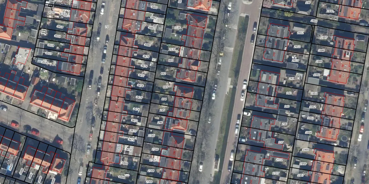 Gebruik de zoekbalk of klik op een perceel voor informatie over de adressen binnen dit perceel.