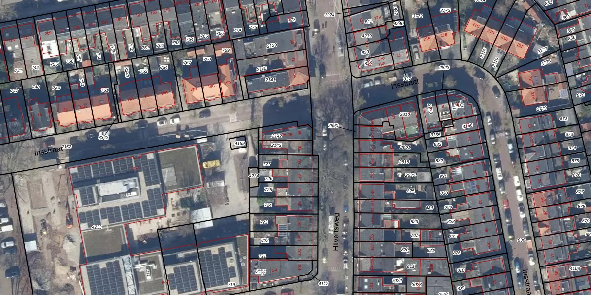 Het adres is gelegen op perceel 2143 in de sectie L en de kadastrale gemeente Hilversum. De kadastrale aanduiding is aldus HVS00-L-2143. Het perceel is kleiner dan gemiddeld in Hilversum. Het perceel is 85 m² groot, terwijl het gemiddelde ligt op 1394,51 m². Het grootste perceel in de kadastrale gemeente is 91,7 ha. Het kleinste perceel heeft een oppervlakte van 0 m². Dit is het enige adres dat aanwezig is op het perceel. De laatste wijziging in het de Basisregistratie Kadaster (BRK) was op 31-05-1999.