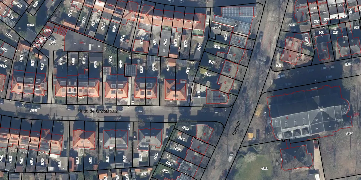 Het perceel waarop Hugo de Grootstraat 2 staat heeft een oppervlakte van 266 m². Dit is een middelgroot perceel. De perceeloppervlakte wordt geregistreerd door het Kadaster. Gedetailleerde informatie over de maten van dit perceel kunt u vinden in het rapport Kadastrale kaart met maatvoering van Hugo de Grootstraat 2.
