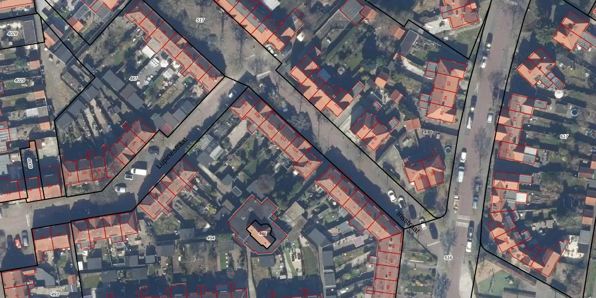 Irisstraat 114 is gelegen op kadastraal perceel HVS00L494. Deze kadastrale aanduiding is uniek en wordt gebruikt door het Kadaster om eigendomsrechten en andere zakelijke rechten vast te leggen. Het perceel maakt onderdeel uit van de kadastrale gemeente Hilversum.