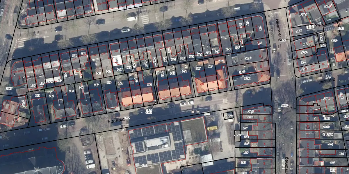 Irisstraat 19 is gelegen op kadastraal perceel HVS00L753. Deze kadastrale aanduiding is uniek en wordt gebruikt door het Kadaster om eigendomsrechten en andere zakelijke rechten vast te leggen. Het perceel maakt onderdeel uit van de kadastrale gemeente Hilversum.