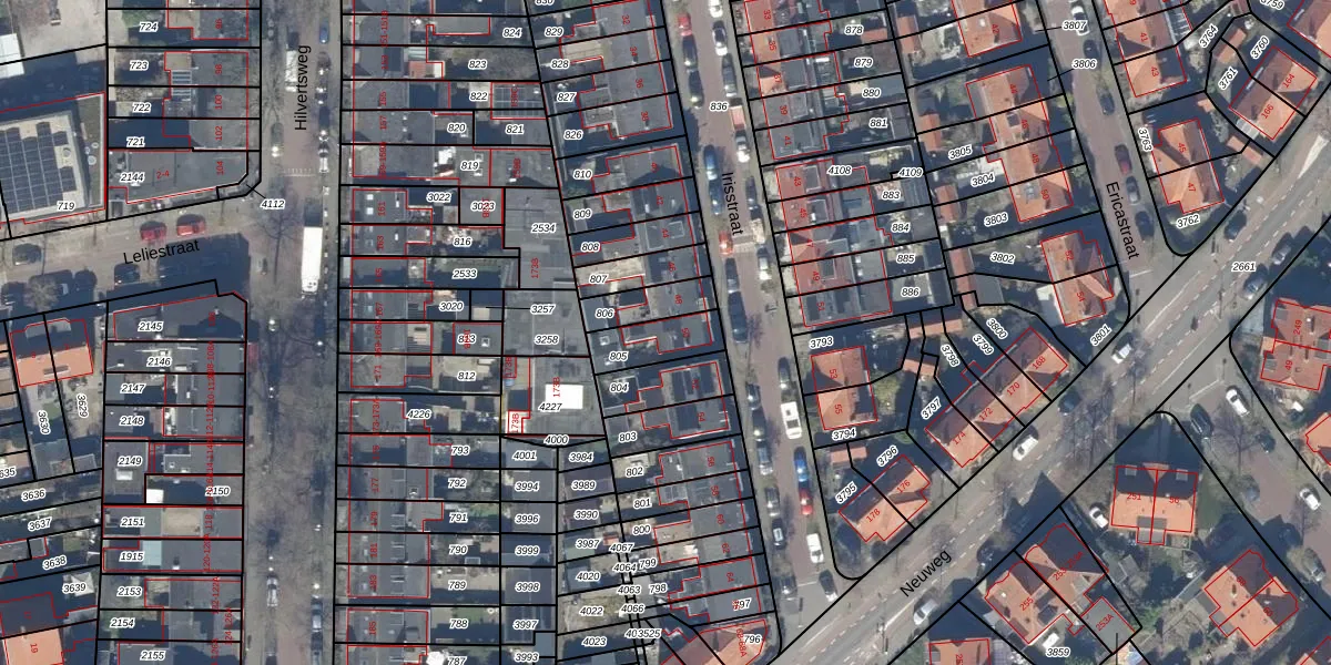 Gebruik de zoekbalk of klik op een perceel voor informatie over de adressen binnen dit perceel.