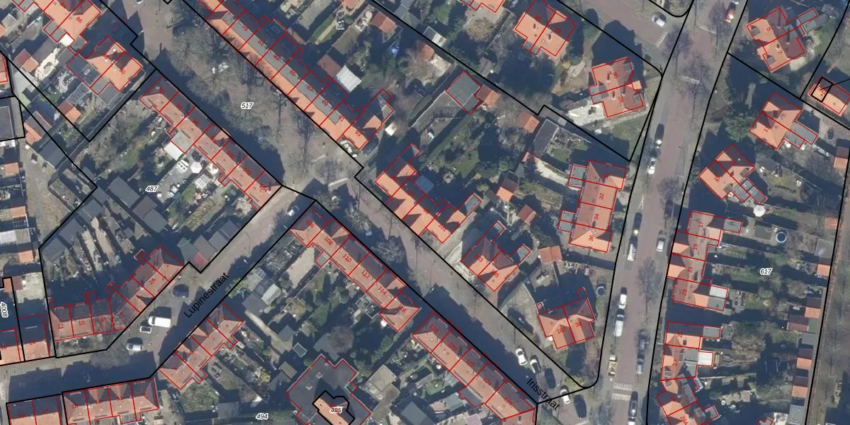 Het perceel waarop Irisstraat 99 staat heeft een oppervlakte van 6475 m². Dit is een zeer groot perceel. De perceeloppervlakte wordt geregistreerd door het Kadaster. Gedetailleerde informatie over de maten van dit perceel kunt u vinden in het rapport Kadastrale kaart met maatvoering van Irisstraat 99.