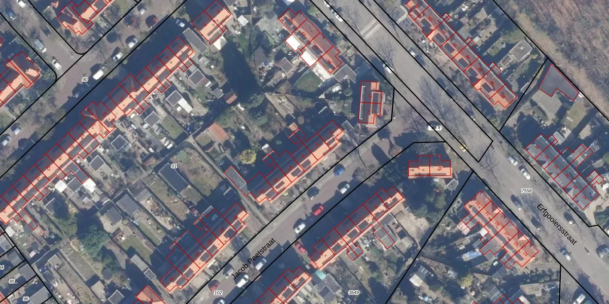 Het perceel waarop Jacob Peetstraat 8 staat heeft een oppervlakte van 9298 m². Dit is een zeer groot perceel. De perceeloppervlakte wordt geregistreerd door het Kadaster. Gedetailleerde informatie over de maten van dit perceel kunt u vinden in het rapport Kadastrale kaart met maatvoering van Jacob Peetstraat 8.