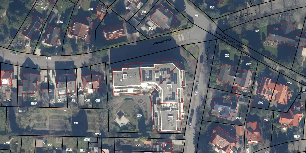 Jonkerweg 1-E is gelegen op kadastraal perceel HVS00P710. Deze kadastrale aanduiding is uniek en wordt gebruikt door het Kadaster om eigendomsrechten en andere zakelijke rechten vast te leggen. Het perceel maakt onderdeel uit van de kadastrale gemeente Hilversum.