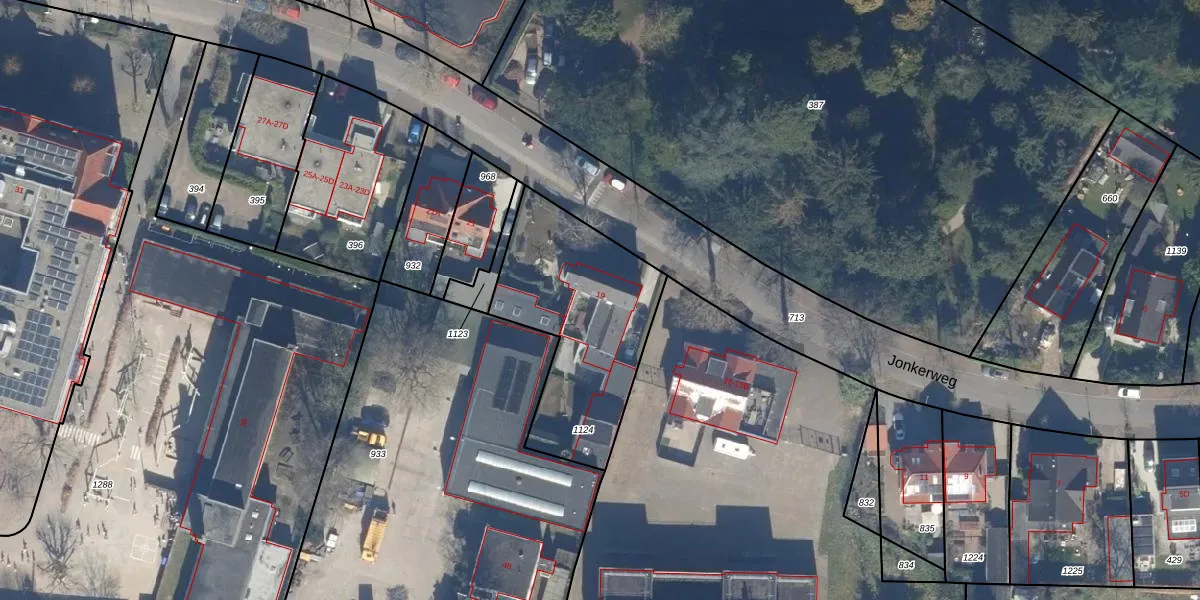 Het perceel waarop Jonkerweg 19 staat heeft een oppervlakte van 771 m². Dit is een groot perceel. De perceeloppervlakte wordt geregistreerd door het Kadaster. Gedetailleerde informatie over de maten van dit perceel kunt u vinden in het rapport Kadastrale kaart met maatvoering van Jonkerweg 19.