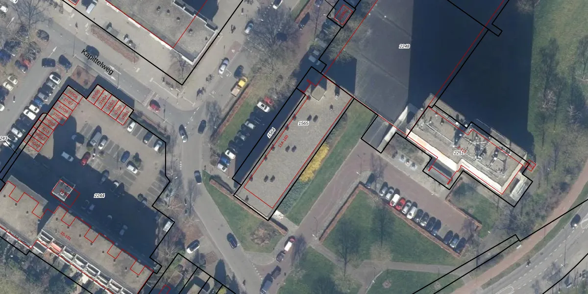 Kapittelweg 114-G1 is gelegen op kadastraal perceel HVS00H1565. Deze kadastrale aanduiding is uniek en wordt gebruikt door het Kadaster om eigendomsrechten en andere zakelijke rechten vast te leggen. Het perceel maakt onderdeel uit van de kadastrale gemeente Hilversum.
