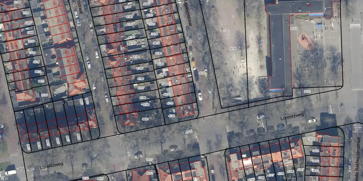 Gebruik de zoekbalk of klik op een perceel voor informatie over de adressen binnen dit perceel.