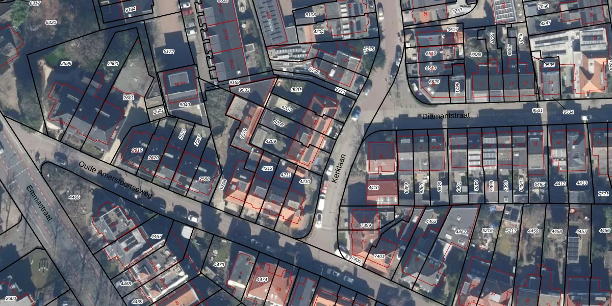Kerklaan 54 is gelegen op kadastraal perceel HVS00N4209. Deze kadastrale aanduiding is uniek en wordt gebruikt door het Kadaster om eigendomsrechten en andere zakelijke rechten vast te leggen. Het perceel maakt onderdeel uit van de kadastrale gemeente Hilversum.
