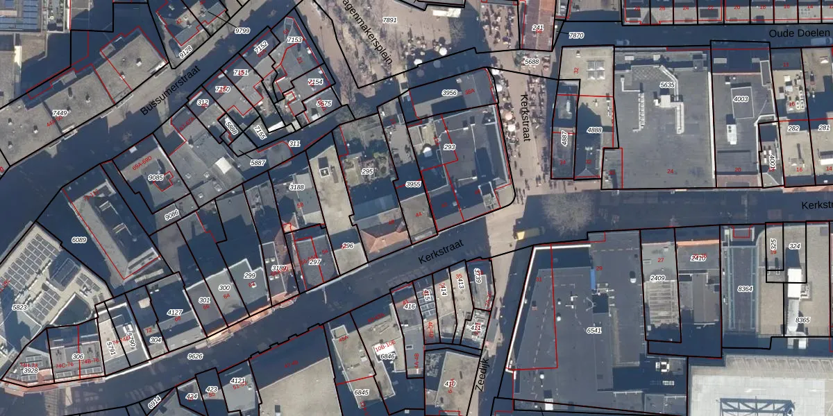 Kerkstraat 44 is gelegen op kadastraal perceel HVS00N3955. Deze kadastrale aanduiding is uniek en wordt gebruikt door het Kadaster om eigendomsrechten en andere zakelijke rechten vast te leggen. Het perceel maakt onderdeel uit van de kadastrale gemeente Hilversum.