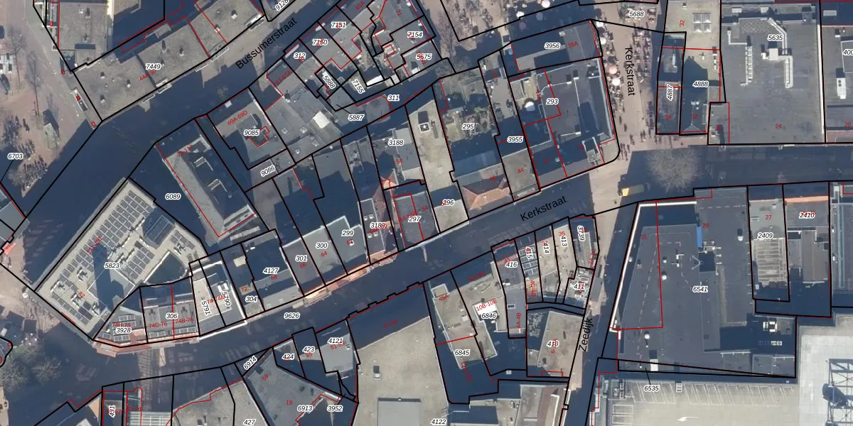 Kerkstraat 54 is gelegen op kadastraal perceel HVS00N297. Deze kadastrale aanduiding is uniek en wordt gebruikt door het Kadaster om eigendomsrechten en andere zakelijke rechten vast te leggen. Het perceel maakt onderdeel uit van de kadastrale gemeente Hilversum.