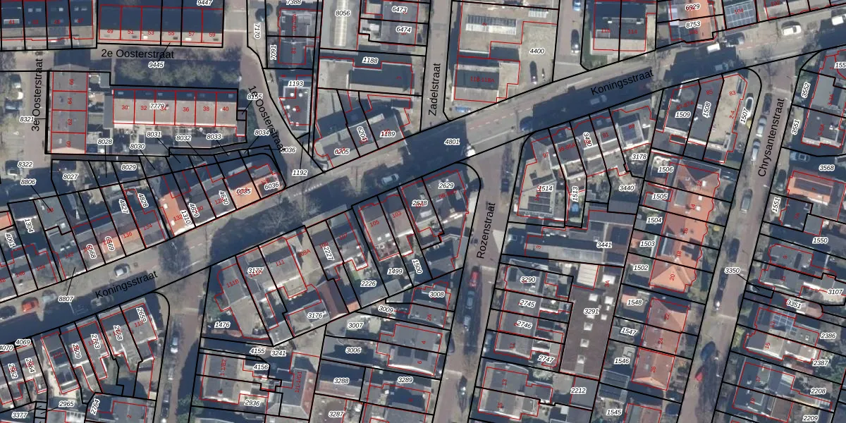 Het perceel waarop Koningsstraat 101 staat heeft een oppervlakte van 94 m². Dit is een klein perceel. De perceeloppervlakte wordt geregistreerd door het Kadaster. Gedetailleerde informatie over de maten van dit perceel kunt u vinden in het rapport Kadastrale kaart met maatvoering van Koningsstraat 101.