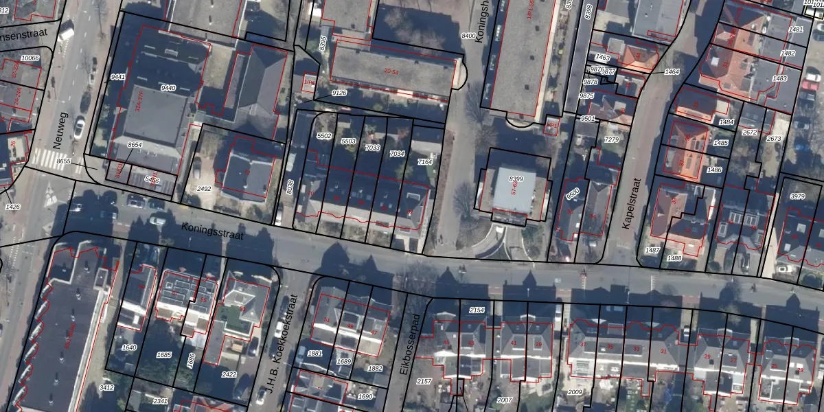 Het perceel waarop Koningsstraat 62 staat heeft een oppervlakte van 254 m². Dit is een middelgroot perceel. De perceeloppervlakte wordt geregistreerd door het Kadaster. Gedetailleerde informatie over de maten van dit perceel kunt u vinden in het rapport Kadastrale kaart met maatvoering van Koningsstraat 62.