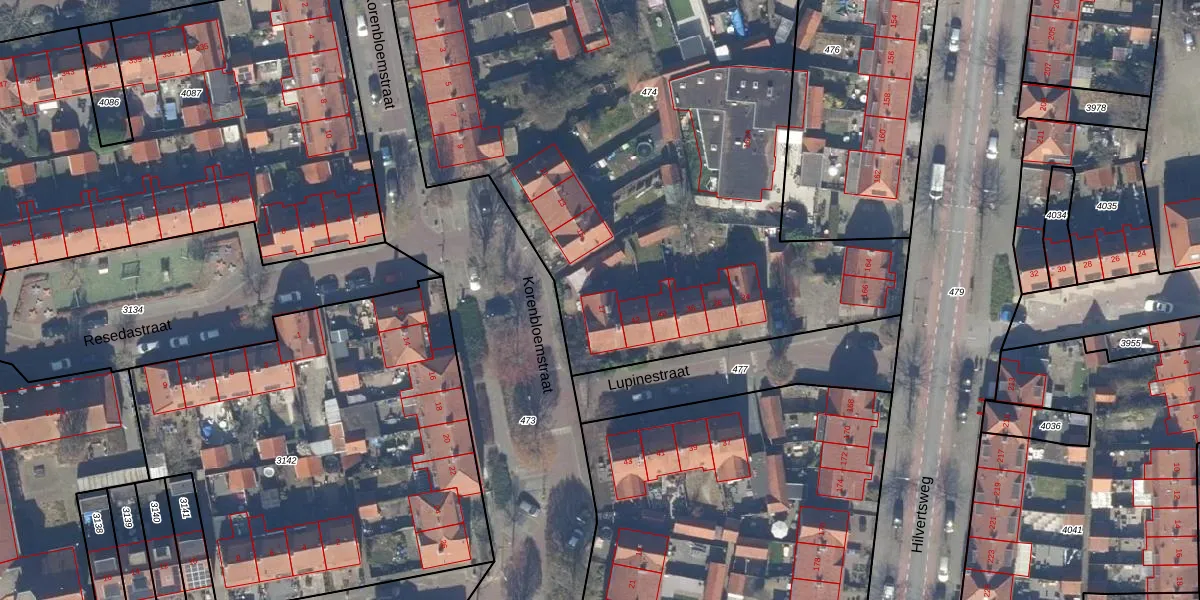 Korenbloemstraat 17 is gelegen op kadastraal perceel HVS00L474. Deze kadastrale aanduiding is uniek en wordt gebruikt door het Kadaster om eigendomsrechten en andere zakelijke rechten vast te leggen. Het perceel maakt onderdeel uit van de kadastrale gemeente Hilversum.