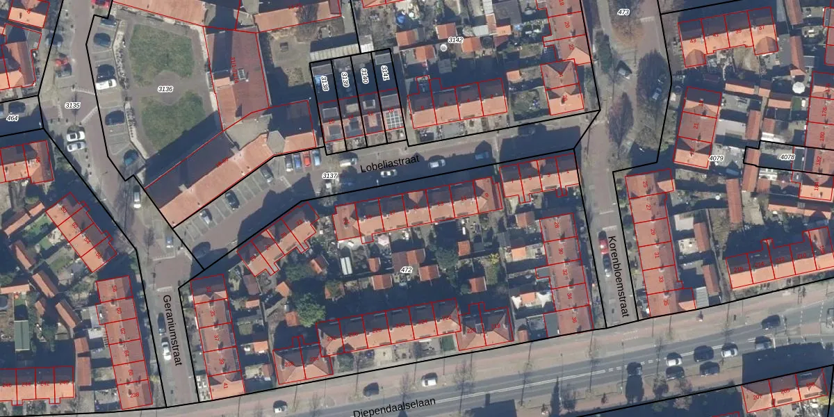 Het perceel waarop Lobeliastraat 15 staat heeft een oppervlakte van 4053 m². Dit is een zeer groot perceel. De perceeloppervlakte wordt geregistreerd door het Kadaster. Gedetailleerde informatie over de maten van dit perceel kunt u vinden in het rapport Kadastrale kaart met maatvoering van Lobeliastraat 15.