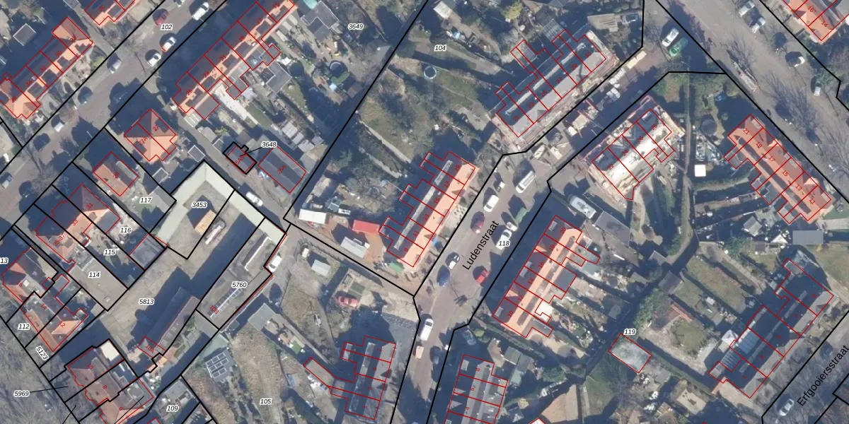 Het perceel waarop Ludenstraat 13 staat heeft een oppervlakte van 3787 m². Dit is een zeer groot perceel. De perceeloppervlakte wordt geregistreerd door het Kadaster. Gedetailleerde informatie over de maten van dit perceel kunt u vinden in het rapport Kadastrale kaart met maatvoering van Ludenstraat 13.