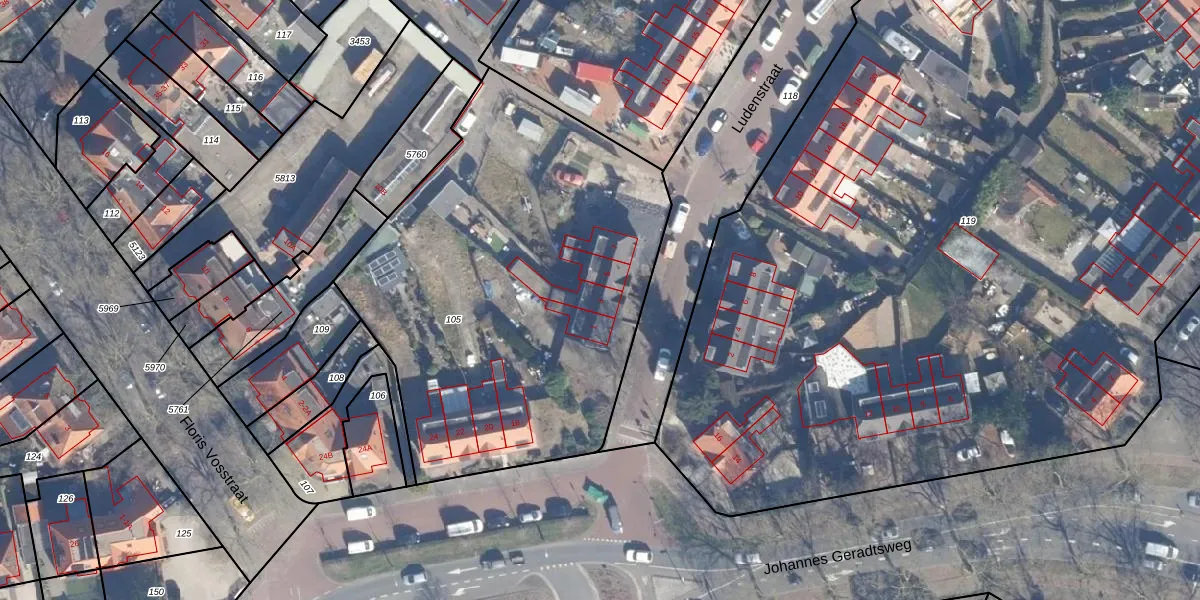 Het perceel waarop Ludenstraat 3 staat heeft een oppervlakte van 2471 m². Dit is een zeer groot perceel. De perceeloppervlakte wordt geregistreerd door het Kadaster. Gedetailleerde informatie over de maten van dit perceel kunt u vinden in het rapport Kadastrale kaart met maatvoering van Ludenstraat 3.