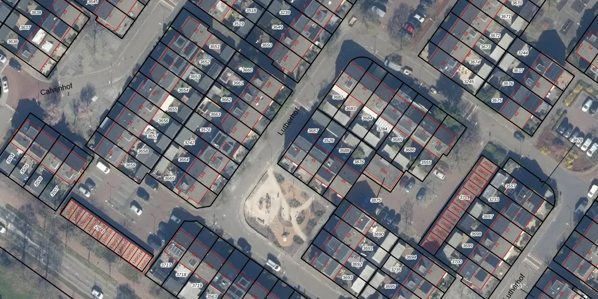 Lutherhof 43 is gelegen op kadastraal perceel HVS00H3687. Deze kadastrale aanduiding is uniek en wordt gebruikt door het Kadaster om eigendomsrechten en andere zakelijke rechten vast te leggen. Het perceel maakt onderdeel uit van de kadastrale gemeente Hilversum.