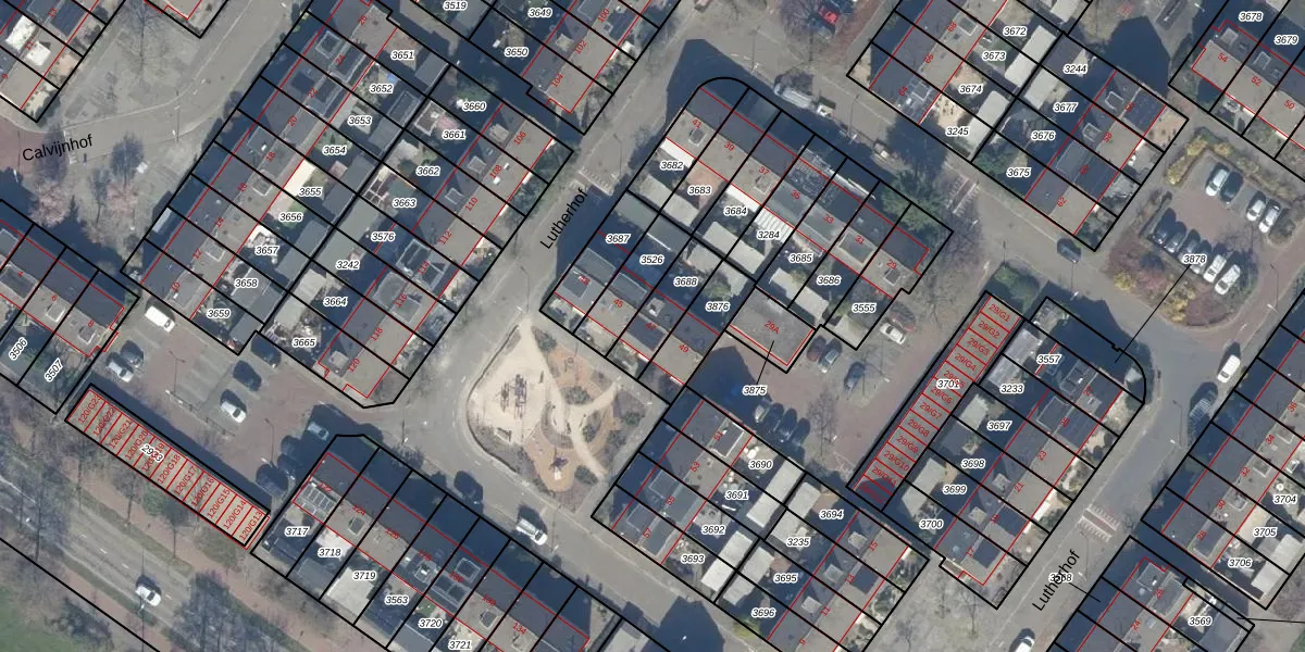 Lutherhof 47 is gelegen op kadastraal perceel HVS00H3688. Deze kadastrale aanduiding is uniek en wordt gebruikt door het Kadaster om eigendomsrechten en andere zakelijke rechten vast te leggen. Het perceel maakt onderdeel uit van de kadastrale gemeente Hilversum.